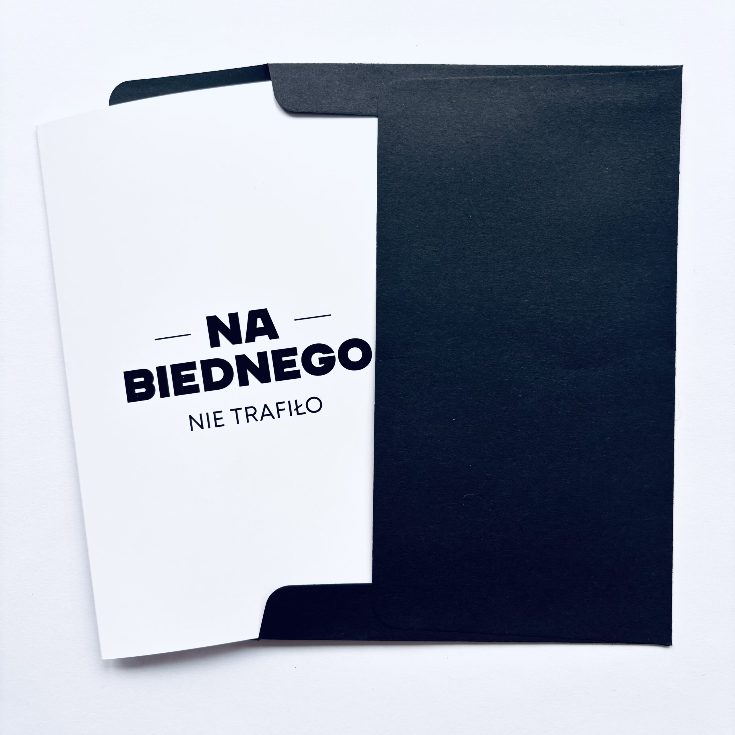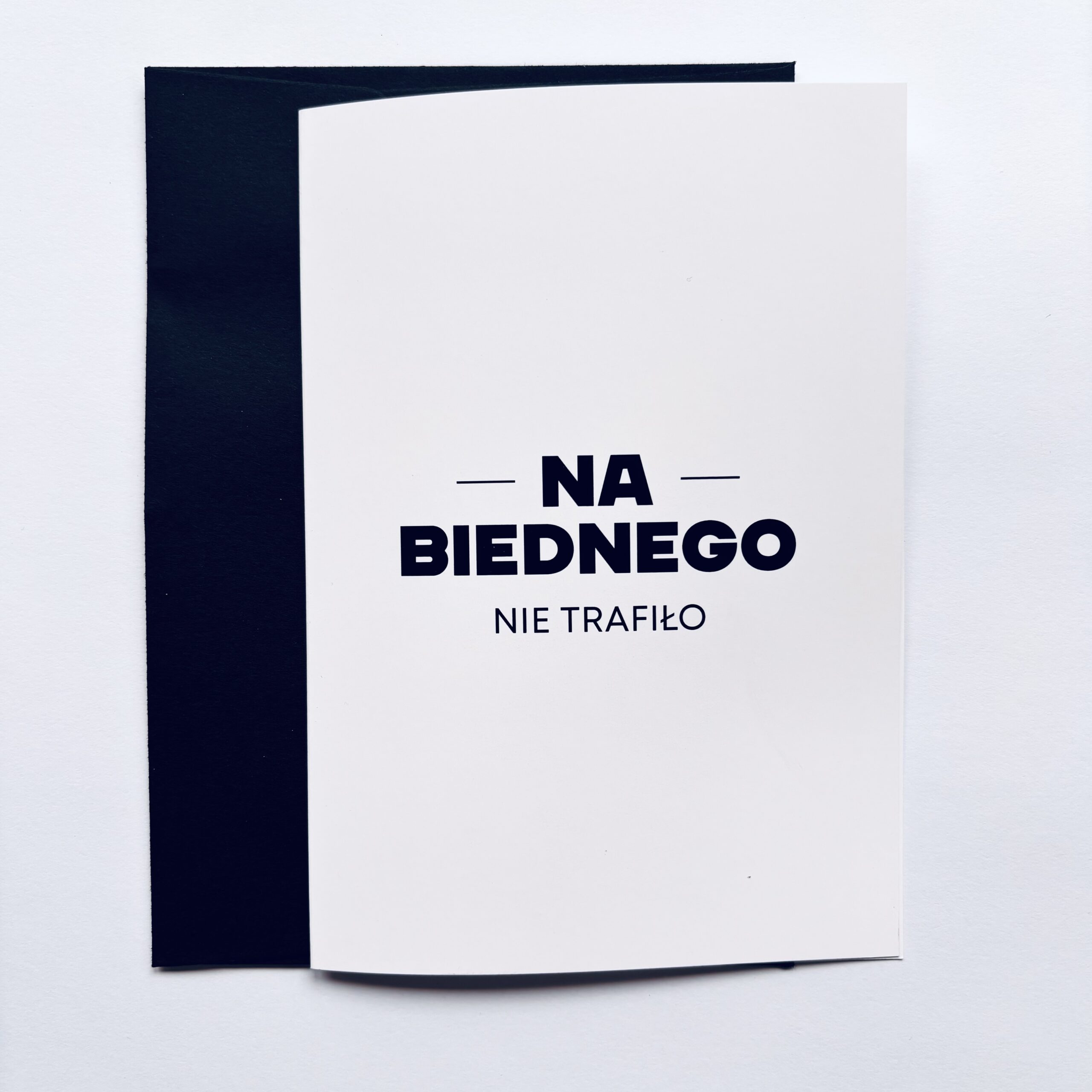 Kartka okolicznościowa „Na biednego nie trafiło”.