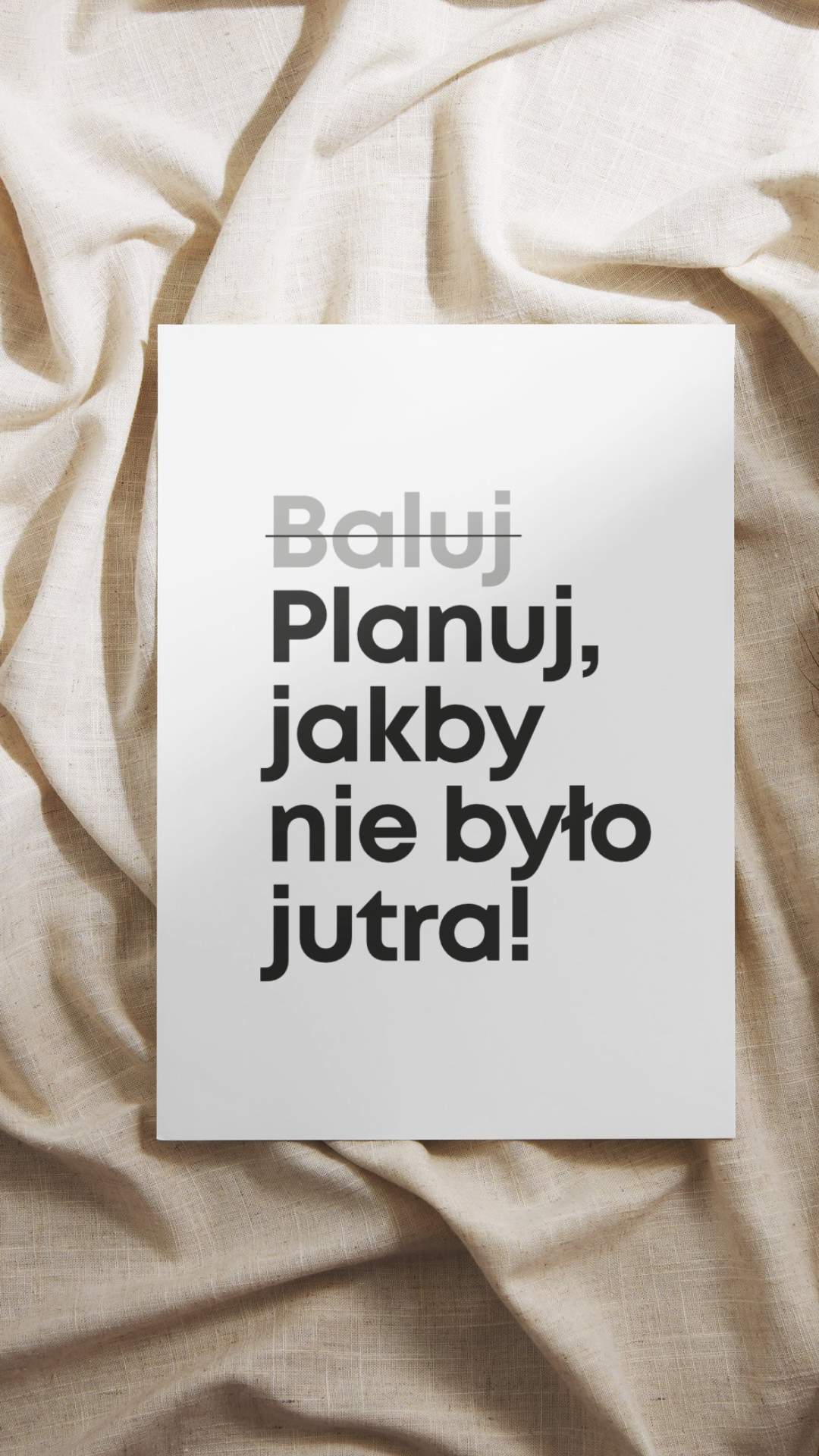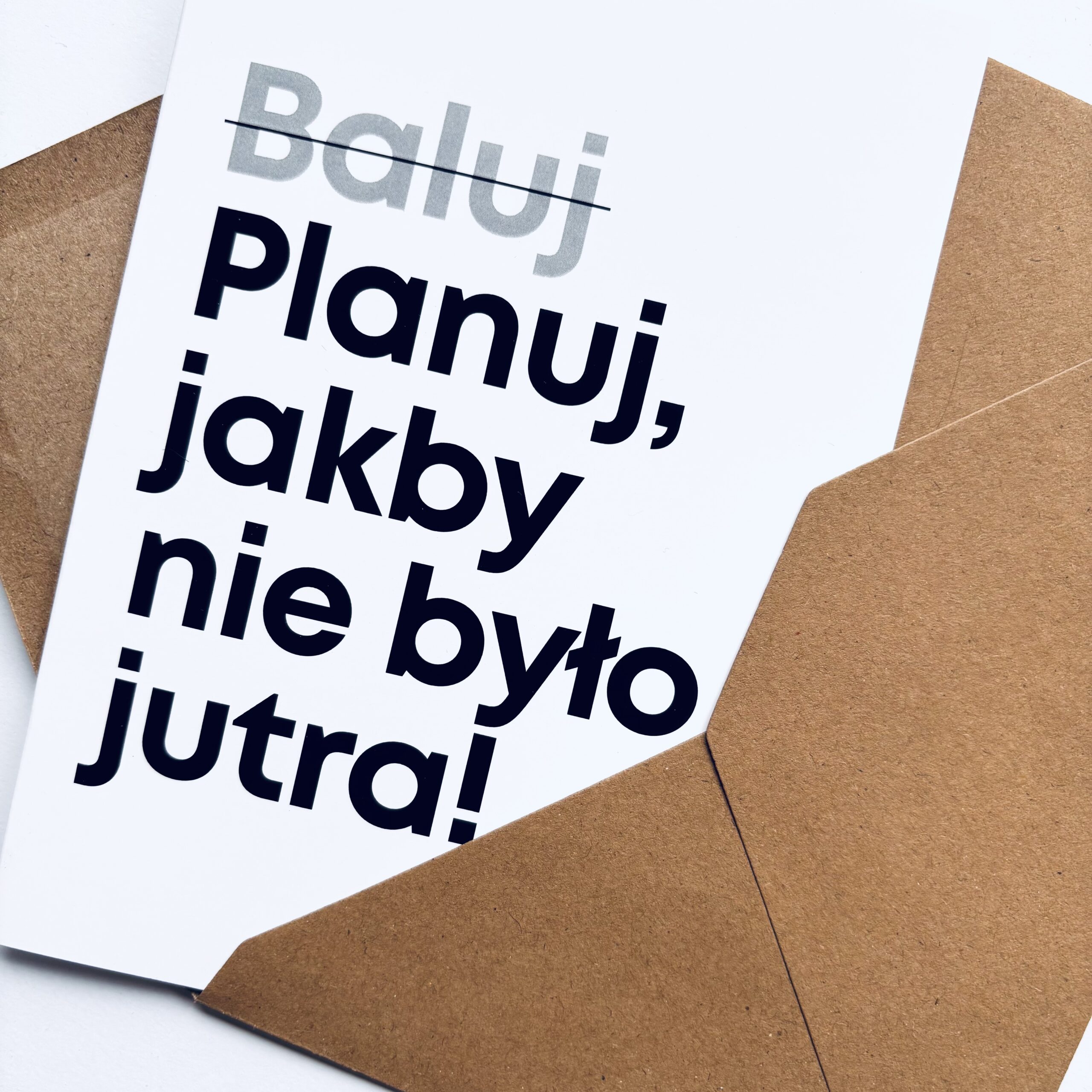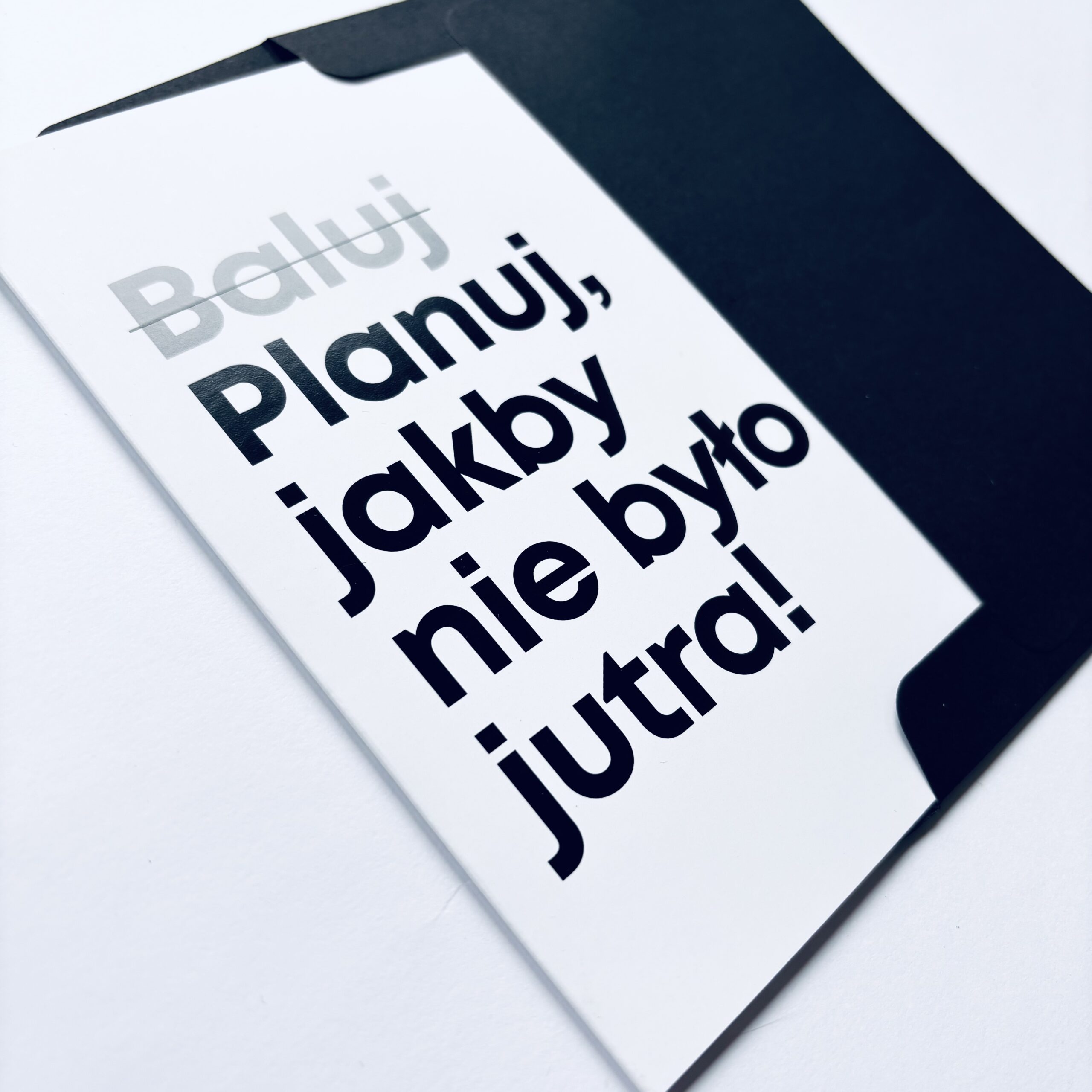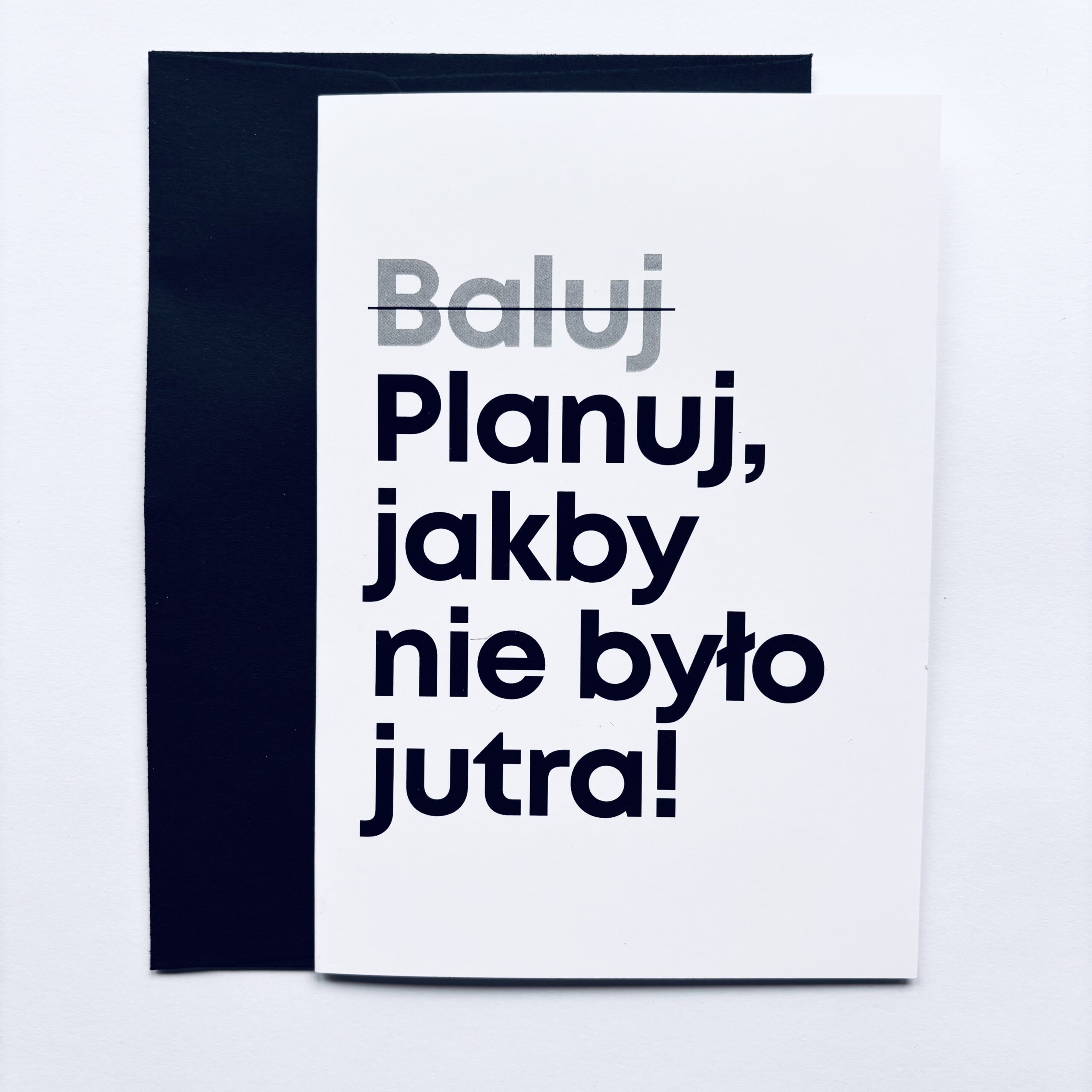 Kartka okolicznościowa “Planuj jakby nie było jutra”.