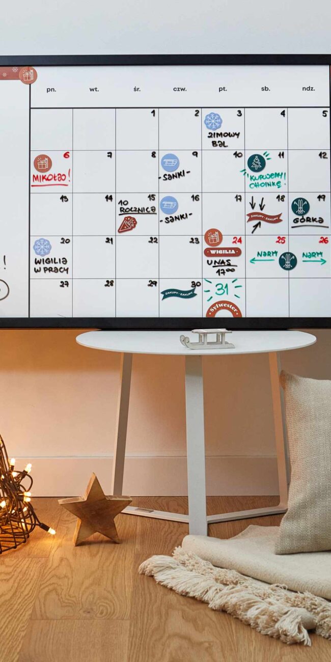 Na każdym etapie ułatwiaj sobie planowanie świąteczne. Pomoże w tym tworzenie list i dzielenie wszystkich elementów na mniejsze kroki. Oznaczaj na plannerze kluczowe aktywności, spisuj zadania i dziel je między osoby za pomocą legendy kolorystycznej. Plan na Święta pomaga w ograniczeniu stresowych sytuacji 🙂