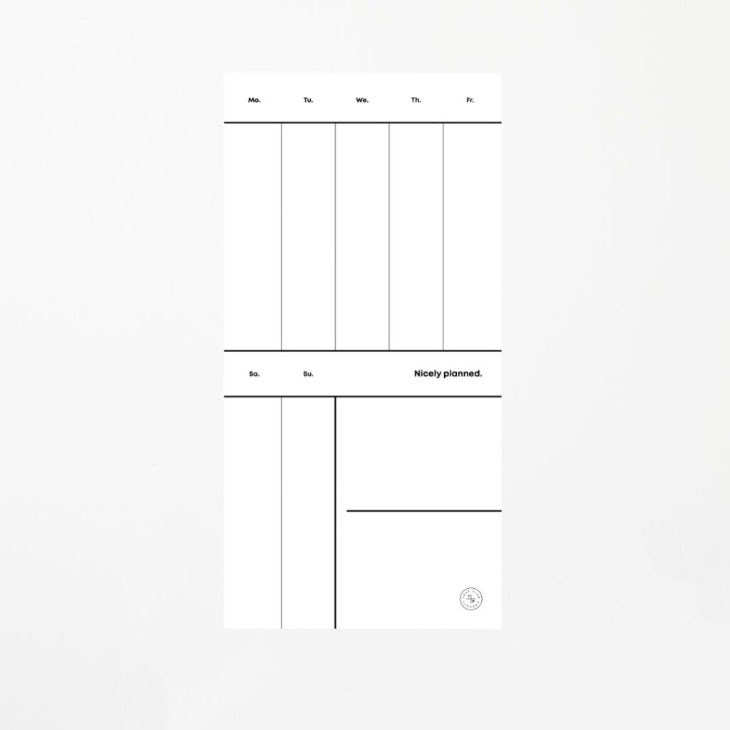 W kolumnie danego dnia w układzie tygodniowym dodaj na dole notatki odnoszące się do kolejnego tygodnia – użyj innego koloru markera, by je wyróżnić. Sferę notatek pozostaw na listy zakupów i / lub prezentów.